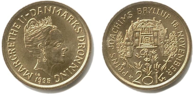 I 1992 fejredes regentparrets sølvbryllup med erindringsmønter i værdierne 20 kroner og 200 kroner, og da den næstældste søn, Joachim (f. 1969), i 1995 giftede sig med Alexandra, fejredes dette ligeledes med udgivelser af mønter med pålydende 20 kroner og 200 kroner. Alexandra blev dansk prinsesse, men hverken nævntes eller afbildedes på mønterne, der nævner prins Joachim og afbilder parrets nye hjem, Schackenborg i Sønderjylland.