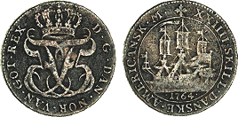Hede 6 Siegs møntkatalog anfører, at der findes falske 24 skillinge fra 1763 til 1767 - altså også fra Christian 7. (som ses herunder). Desuden findes også falske 12 skillinge fra 1764 som vist herover. (Lerches samling)