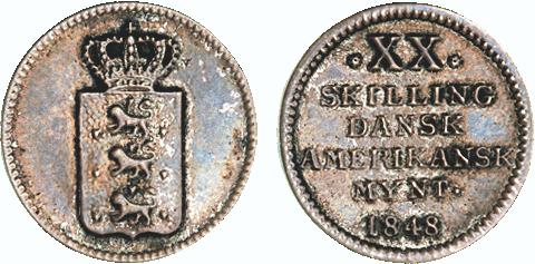 Hede 5B Eksemplaret til venstre viser tydelig afskalning af sølvlaget. (Lerches samling)