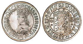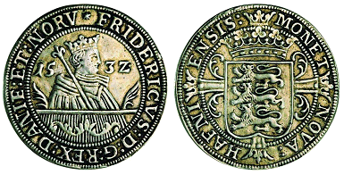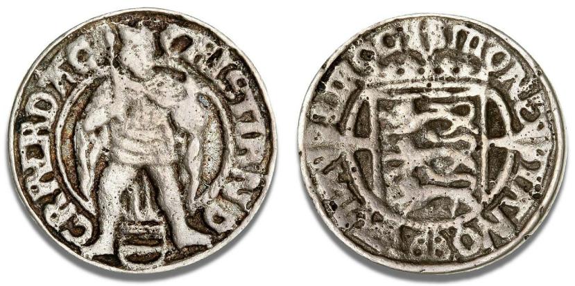 Galster 255. Afstøbning af ukendt halv sølvgylden, der sansynligvis ikke har eksisteret.