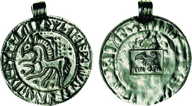 Tinsmykke udformet som ikke kendt mønt. (Lerches samling)