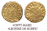 Guldpenninge fra Knud den Store og Hardeknud: Klik på mønten for yderligere oplysninger.