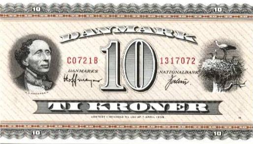 Dansk digter, Afbildet på 10 kroner pengesedlen DOP 139-142.