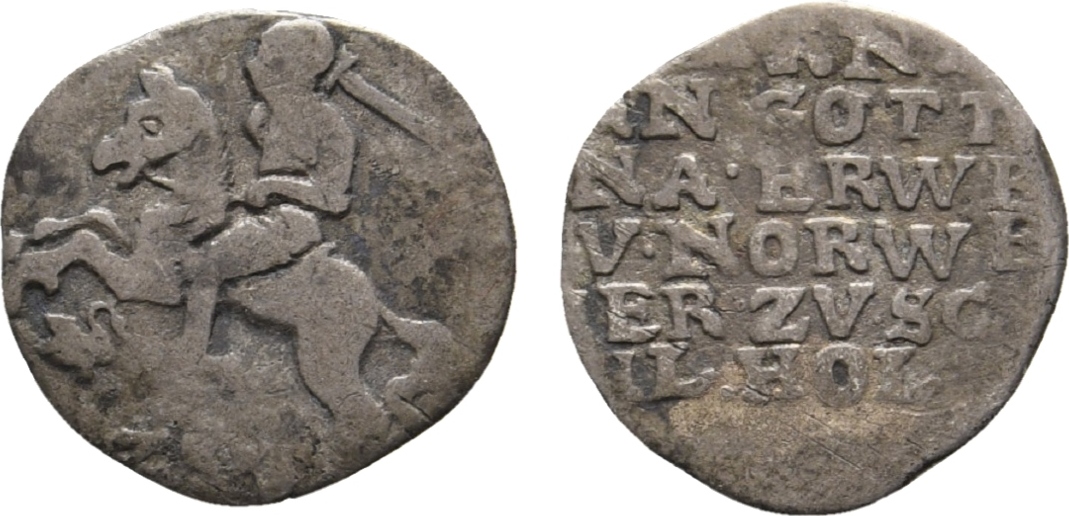| 2 | - | 2 | 10b | - | 2 skilling lybsk | sølv | u. år | Fs: Rytter mod venstre. Ingen svane under hestens forben; Z S L Bs: (...) NORWEGEN HERTOG (...) |