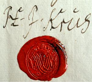 På illustrationen herunder ses Hans Jørgen Krus' segl, som Michael Märcher fandt i en arkivpakke i sommeren 2005.