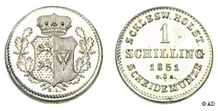 - 1 Schilling, 1851 (RR), (Hede 18, Schou 4, Sieg 23)