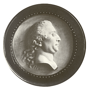 Illustrationen viser en posthum portrætmedaillon i marmor af Johannes Wiedewelt (1795).