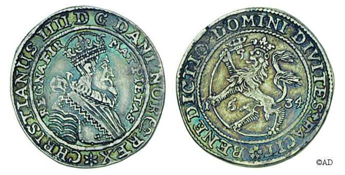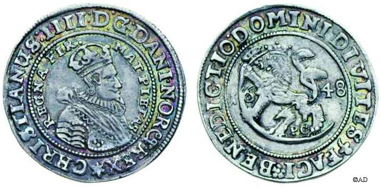 - B) 1643 (R), 1646, 1647, 1648; møntmærke: kløver: