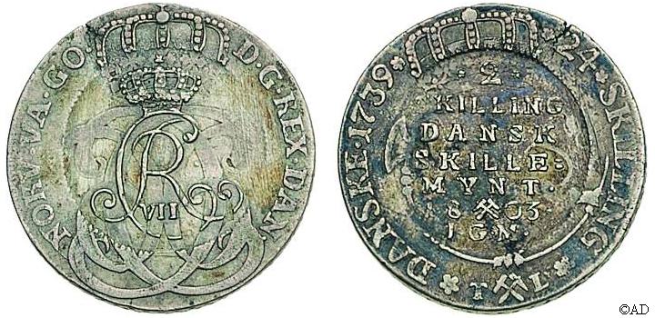 1803, Schou 6 overpræget på Chr. 6., 24 sk. 1739 H4C, Schou 1