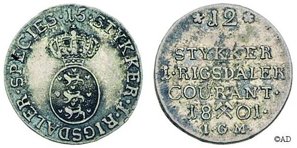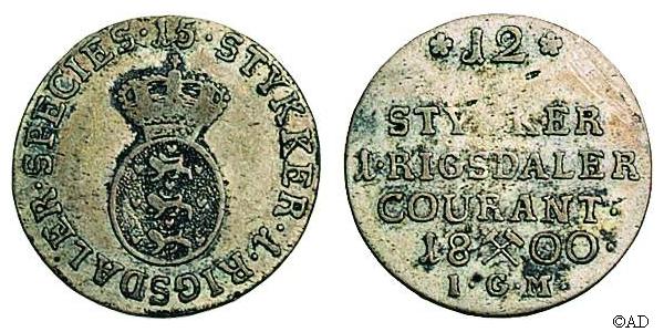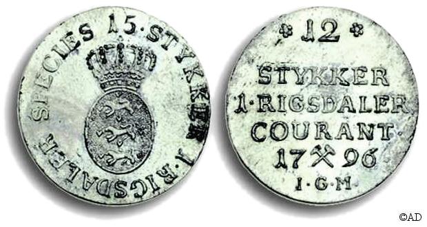 Nedenstående mønt er ikke kendt af Schou. Stavefejlen med det manglende L i RIGSDA[L]ER på forsiden er bemærkelsesværdig.