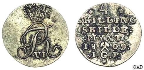 Forside: monogram, bagside: værdiangivelse (Hede Norge 2, Schou 3-4, Sieg Norge 6)