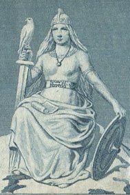 Pengesedler fra IslandSedler udsendt efter Islands selvstændighed fra Danmark er ikke medtaget her.Opmærksomheden henledes på de mange næsten identiske udgivelser fra forskellige myndigheder, således nummer 12, 22 og 29, nummer 13, 23 og 30 samt nummer 14, 24 og 31. Illustrationen til højre viser Fjallkonan (bjergkvinden), som pryder en del af sedlerne - her et udsnit af 10 Krónur (1916, Sieg 13). På sværdet hviler en falk, Islands symbol, som også alene pryder adskillige sedler, for eksempel 5 Krónur (1925, Sieg 22). |
