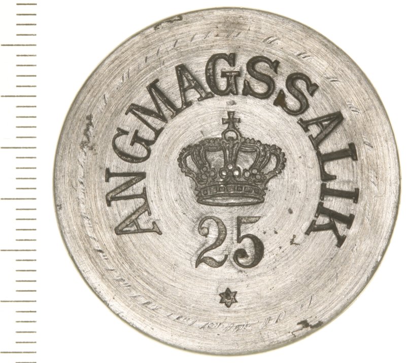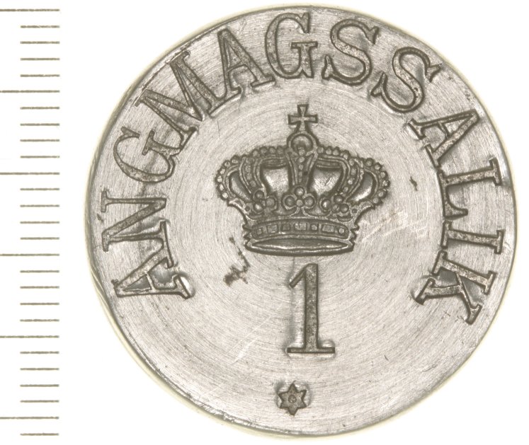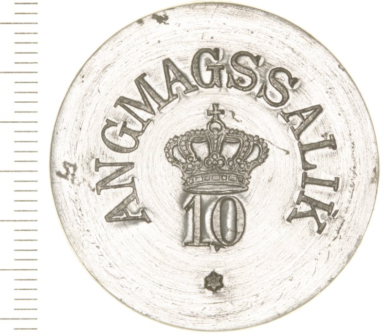 Man indhentede et tilbud på udprægning af mønttegn af zink hos Aktieselskabet Nordiske Metalvarefabrikker, tidligere H. V. Chri- stensen & Co., Amagertorv 25, København K, telefon Central 3371, fabrik Ryesgade 3, København N. De skulle have kr. 8,75 for 100 stykker 1 ører og kr. 13,00 for 100 stykker 50 ører. Embedsmændene udregnede, at det for værdier på 25 øre og derover var billigere at sende pengesedler op, ligesom man i forvejen gjorde til det øvrige Grønland. Og for de små værdiers vedkommende, var det billigere at hente rigtige mønter i Nationalbanken, som man også gjorde til resten af Grønland. Således blev det. Dog undlod man at opsende tiører. De var jo af sølv. Og så sendte man 23. august 1916 et brev op til Angmagssaliks handelsbestyrer og et tilsvarende til førstepræsten: