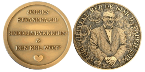 Den viste medaille er en privat frembringelse i anledning af Jørgen Strandgaards 60 års fødselsdag