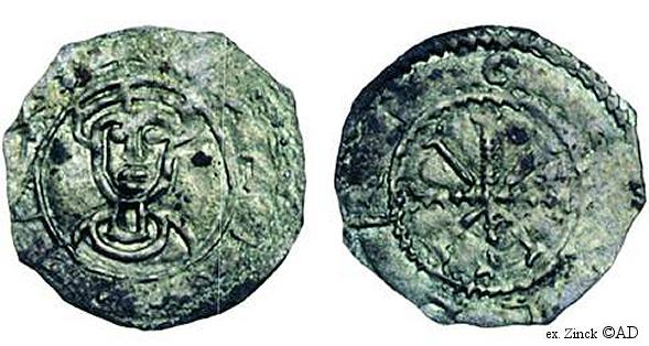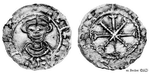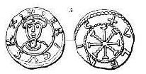 Tegningen viser Hbg. 5 (kongens portræt holder sig inden for omskriften), fotoet viser Hbg. 4 (kongens portræt går til kanten for neden).
