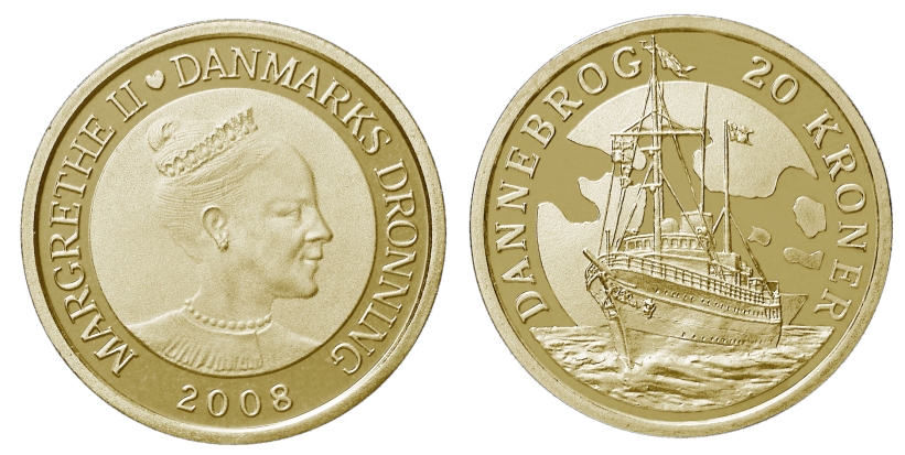 Hjejlen samt jubilæumsmønterne i anledning af Margrethe 2.s 75 års fødselsdag 2015 og Regentparrets guldbryllup 2017.